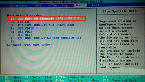 進入bios設置界面后,一般都是用鍵盤上的方向鍵進行操作的。如果是筆記本的話,設置電腦的啟動方式就使用方向鍵將鼠標移動至“boot”,如果是設置電腦為U盤啟動,就需要將usb選項移動至第一項并點擊“F10”保存設置。