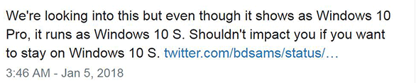 Windows10 S系統的Insider內測項目似乎出了點問題,因為有部分Win10 S內測用戶表示在快速預覽通道中收到了最新的Win10專業版更新。微軟的Windows Insider計劃高級項目