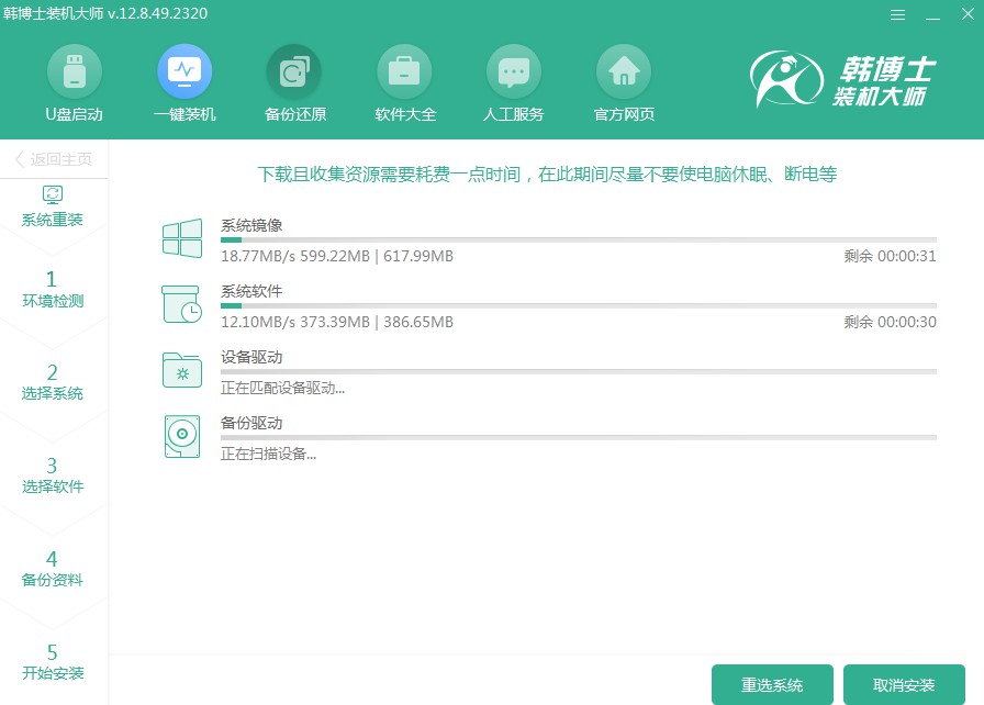 1. 打開韓博士裝機大師,點擊”開始重裝“按鈕。