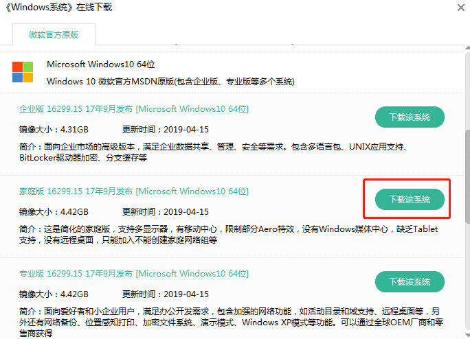 在打開的界面中選擇合適的win10系統文件,最后點擊“下載該系統”。