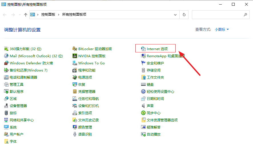 2.選擇【Internet選項】。