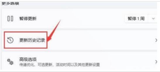 4.在安全模式中進入windows更新,選擇【更新歷史記錄】。