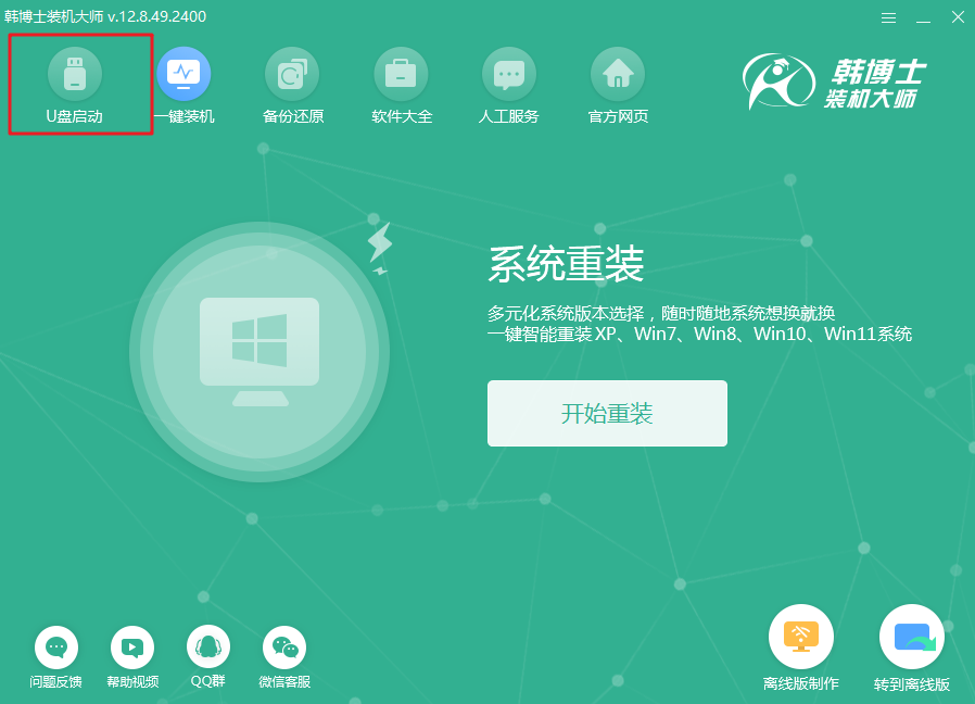 如果上面的方法沒有解決win11開機閃屏的問題,可能是電腦系統存在問題,可以給電腦重裝系統,具體可以參考:韓博士u盤啟動盤制作。