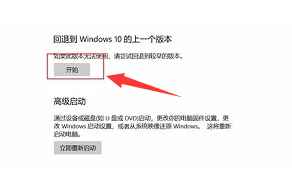 4.選擇“回退到Windows 10上一版本”,并點擊“開始”。