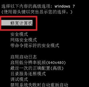 1.重啟電腦后按F8,再點擊“修復計算機”。