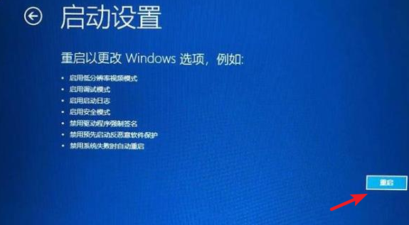 3.進入“啟動設置”頁面后,點擊右下角的“重啟”。