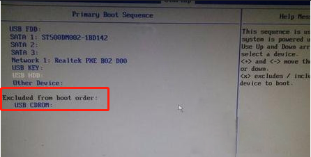 3.此時界面中出現“Excluded from boot order”選項,即未添加的啟動項。直接使用“X”將其移上去。