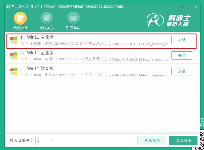 2.進(jìn)入后,系統(tǒng)會(huì)自動(dòng)打開搜索系統(tǒng)鏡像,找到鏡像,點(diǎn)擊“安裝”。