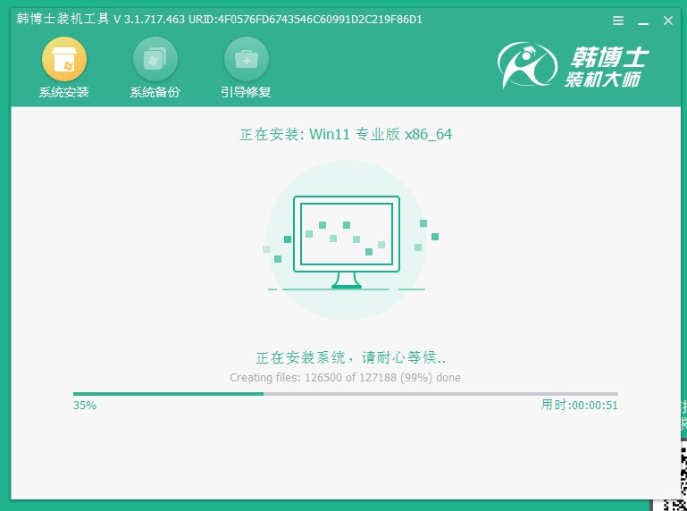 就這樣跟著圖示的流程步驟來,先制作韓博士U盤啟動(dòng)盤,接著用U盤給電腦裝win11系統(tǒng),就可以成功給電腦裝上win11系統(tǒng)了。如果你剛好也有給自己的電腦裝上win11系統(tǒng)的需要,可以參考上面的教程。如果在重裝的過程遇到問題的話,可以咨詢官網(wǎng)的技術(shù)客服!